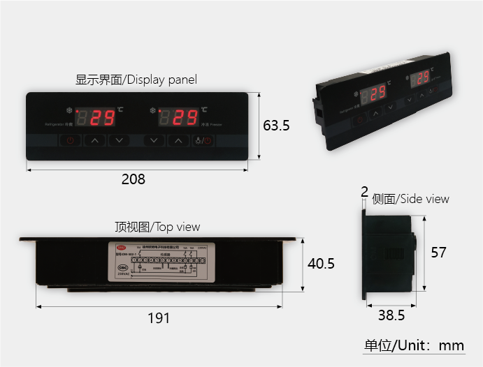 具有雙溫區溫度測量、顯示、控制;溫度校正;強制化霜;溫度超溫及傳感器故障報警;出廠設定值一鍵還原;
